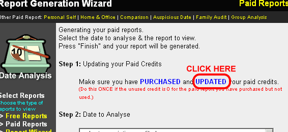 - Click on the Auspicious Date link, which opens up a Report Wizard on the right frame.