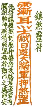 3.1 This charm is used to protect a house against evil influences. It is written on red paper and stick on a wall:-
